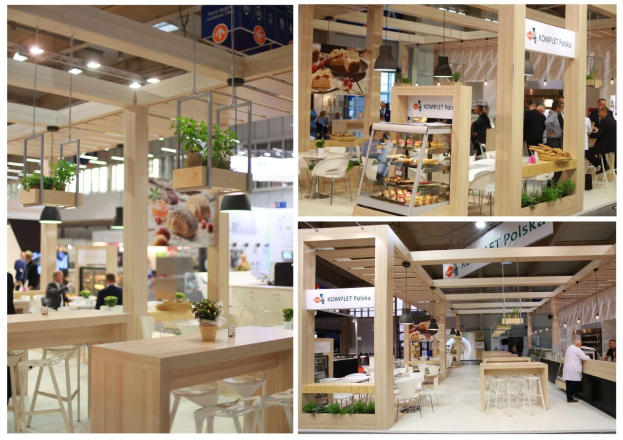 Ekspozycja firmy Komplet Polska z Tarnowa Podgórnego k/Poznania, według projektu Pauliny Brodowskiej z firmy Meliński Minuth z Poznania, wykonanej przez Meliński Minuth na targach Polagra Tech 2016 w Poznaniu.